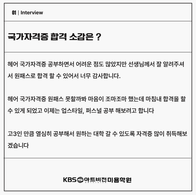 헤어 국가자격증 원패스 합격생 '김예은'