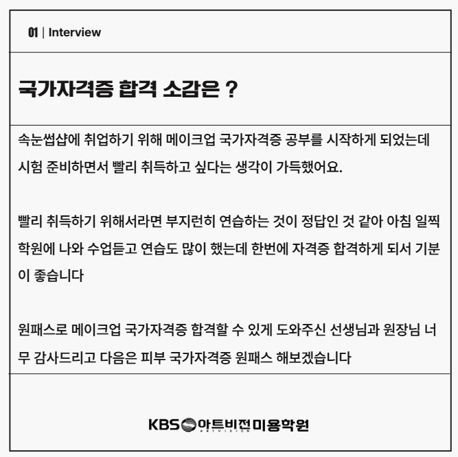 메이크업 국가자격증 원패스 합격생 '전가은'